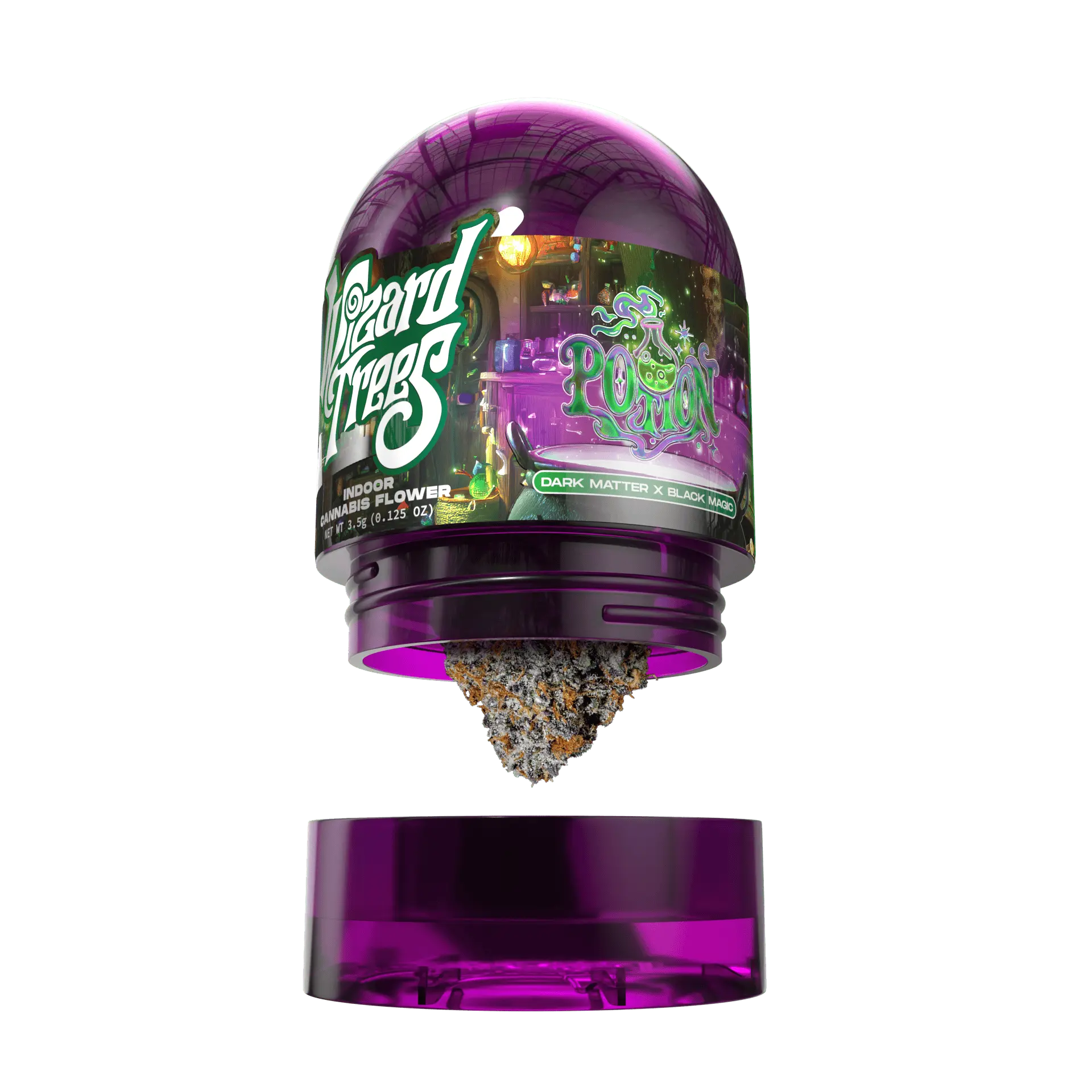 Potion is a heavy, terpene-rich hybrid created by crossing Dark Matter with Black Magic. This powerful combination produces dense, resin-soaked flowers with deep flavor and impressive potency.